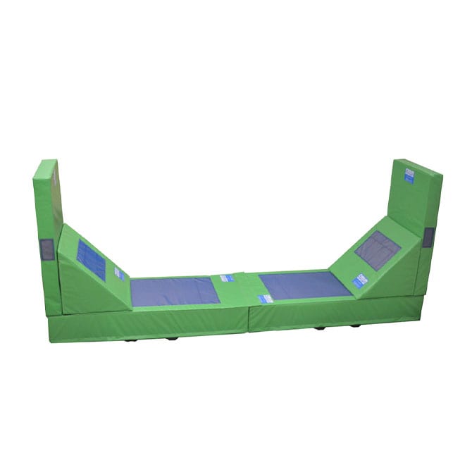 The Carolina Gym Supply Trench Bar Matting System consists of six (6) mats that connect together to form the system: special 8″ soft landing mats, special wedge mats, and Carolina Gym Supply “Marshmallow” Soft Landing Mats.