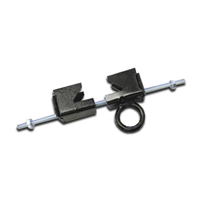 The Adjustable Beam Clamp is made of steel with 1/2-13 threaded rod for adjustment, secured and locked into position with serrated flange lock nuts. The beam clamp is constructed of heavy gauge steel brackets with a 5/8” OD steel ring to easily connect climbing ropes or nets. Brackets supplied with a durable black powder coat finish.